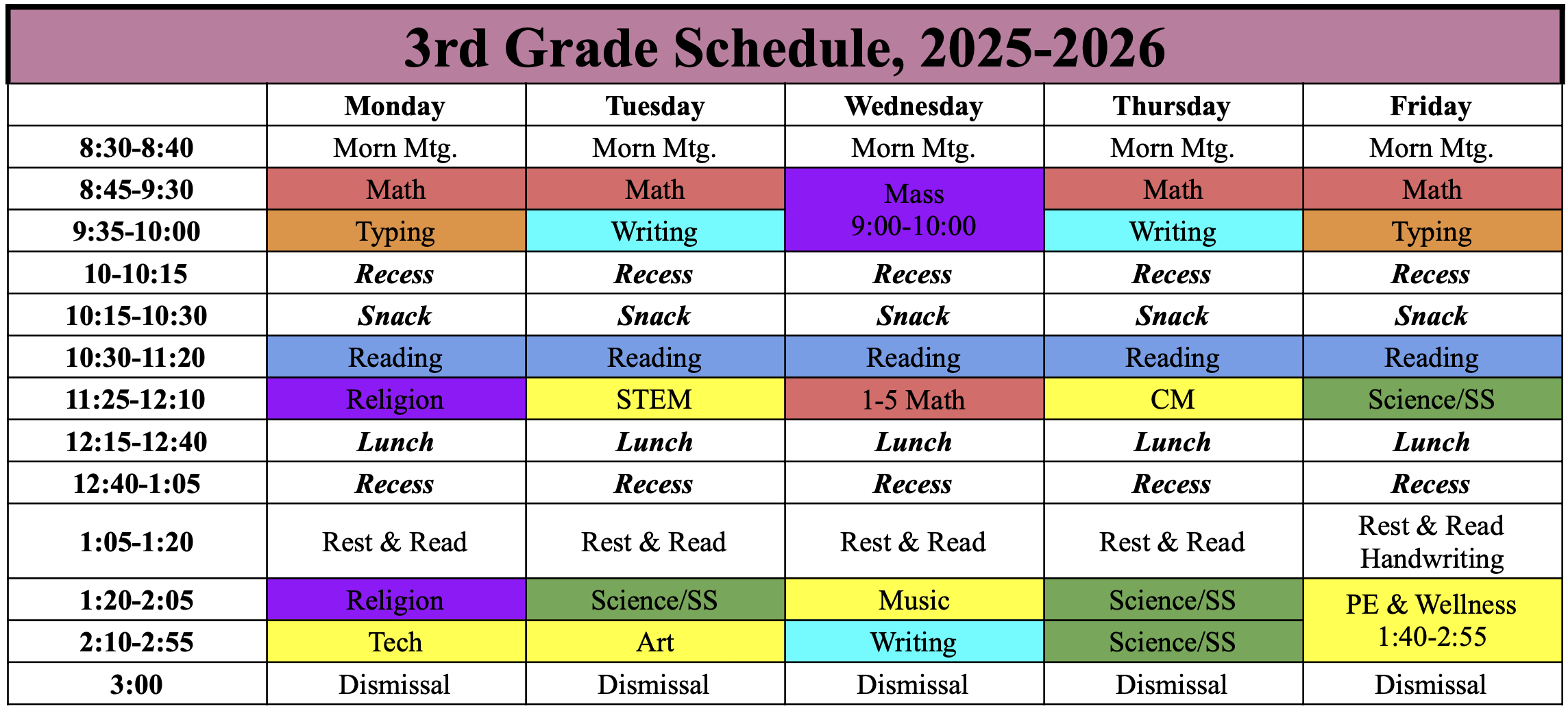 Daily Class Schedule